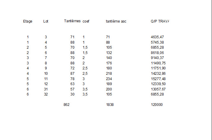 Les noms des coproprietaires ne sont pas portés dans le tableau uniquement les tantièmes