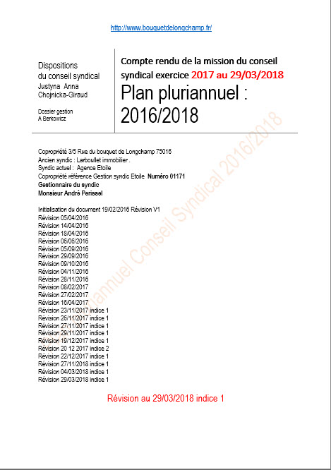 Compte rendu de la mission du conseil syndical Année 2017